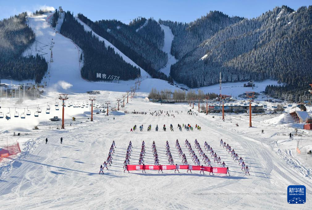 这是在新疆丝绸之路山地度假区举行的乌鲁木齐2024-2025雪季首滑仪式(2024年11月24日摄)。