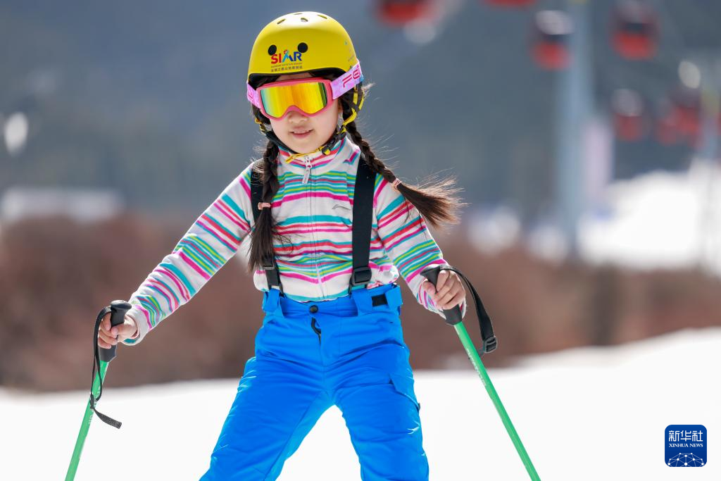 这是一名小朋友在新疆丝绸之路山地度假区滑雪(2025年4月5日摄)。