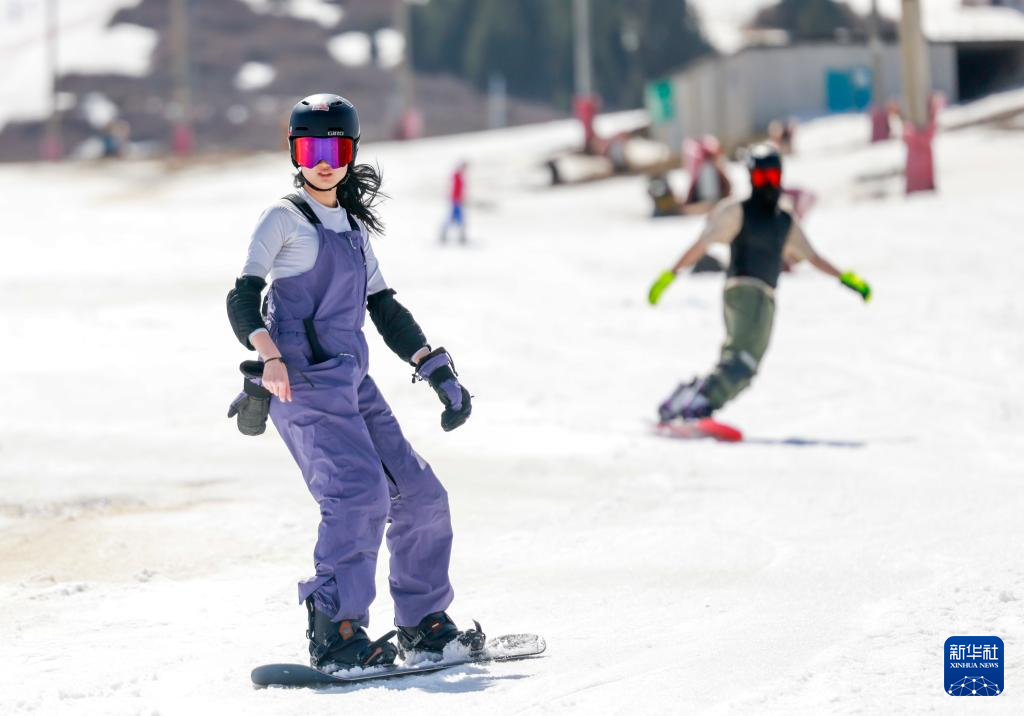 这是游客在新疆丝绸之路山地度假区滑雪(2025年4月5日摄)。