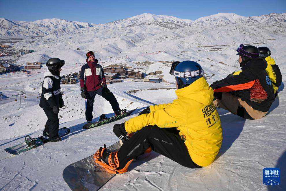 这是一名外籍滑雪教练在新疆阿勒泰将军山国际滑雪度假区授课(2025年1月26日摄)。