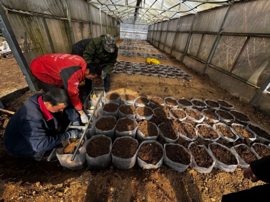 近日,蓝田县辋川镇核桃沟村的天麻种植大棚里一片繁忙景象。村民们正有条不紊地将腐熟土壤、优质木材与蜜环菌分层装入种植桶,菌丝在桶内悄悄孕育,为明年三月乌红杂交天麻种子的播种打下坚实基础。