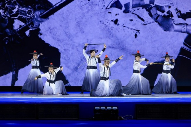 决赛前的开幕仪式,成为彰显陕西文化魅力的高光环节。以“陕北说书”为串场纽带,《盛世龙腾》《砺刃惊鸿》《侠客行》《未来时代》等节目次第展开,融合鼓乐、秦腔元素的器乐演奏,搭配再现长安侠客风骨的舞蹈表演,将十三朝古都的历史底蕴与击剑运动的优雅锐气完美融合,让中外运动员与观众沉浸式感受“体育+文化”的独特魅力。