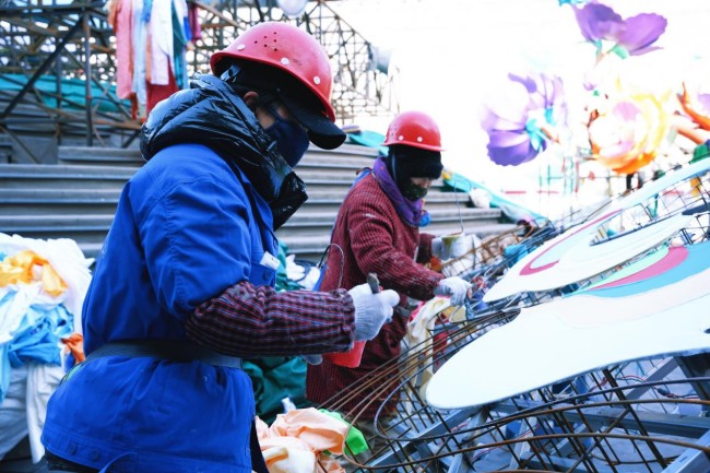 岁暮天寒,在2026“长安灯会·西安城墙”新春系列文化活动的筹备现场,已透露出浓浓的年味与文化的温度。12月17日,步入西安城墙景区,只见大型灯组骨架巍然矗立,工匠们正细心裱糊绸缎、铺设灯带;美工手持彩笔,在灯面上勾勒出精美纹样,部分灯组已经初见雏形。