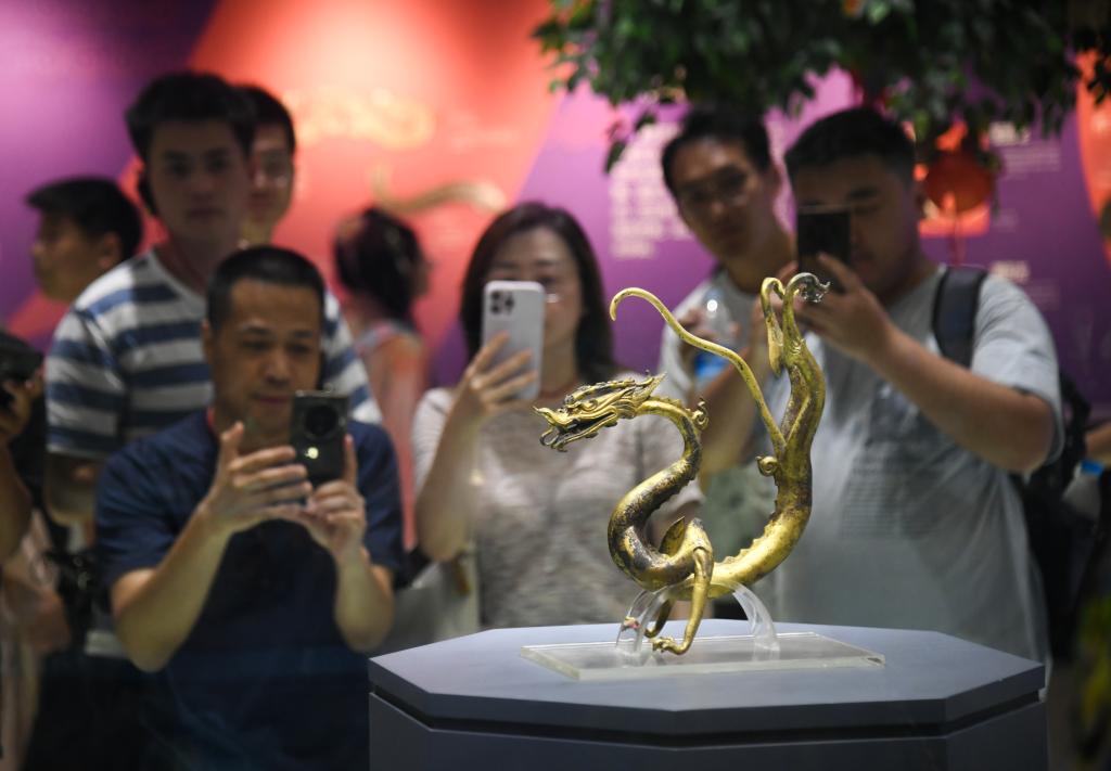 游客在陕西历史博物馆参观、拍照(2024年8月6日摄)。新华社记者张博文摄