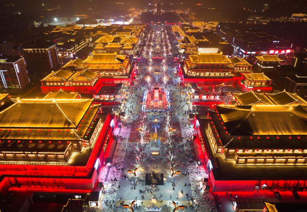 西安大唐不夜城景色(1月22日摄,无人机照片)。新华社记者邵瑞摄
