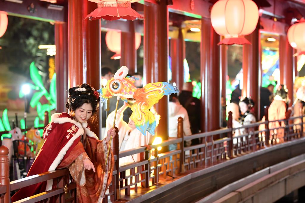 2024年2月2日,游客在西安大唐芙蓉园观看长安灯会。新华社记者李一博摄